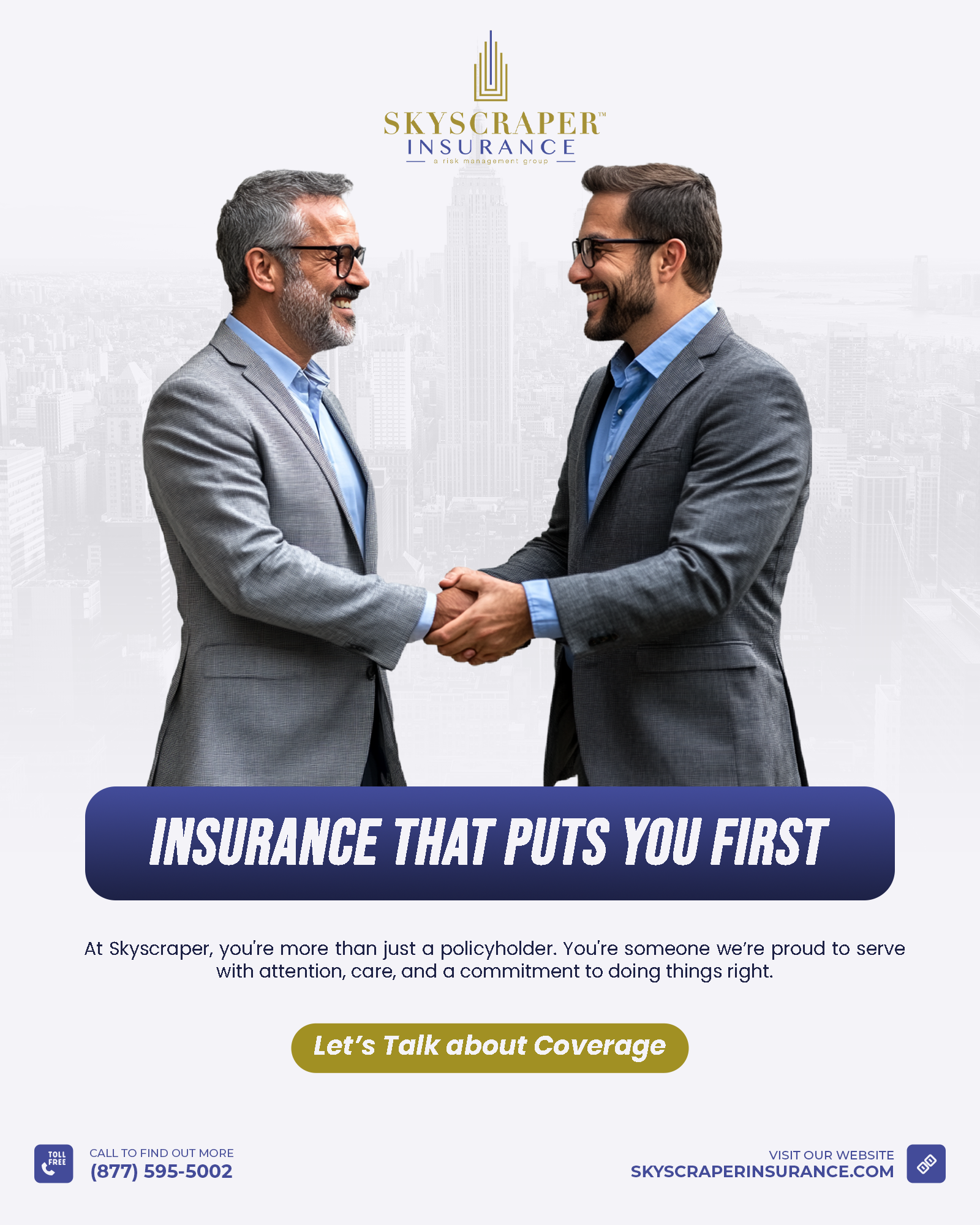 But what truly sets Skyscraper apart is how we serve. It’s not just about what we deliver—it’s about how we deliver it. We believe insurance should feel like a helping hand, not a hurdle. That’s why our process is designed to be clear, accessible, and responsive. When you reach out, we respond. When you need answers, we explain. When something goes wrong, we help make it right.