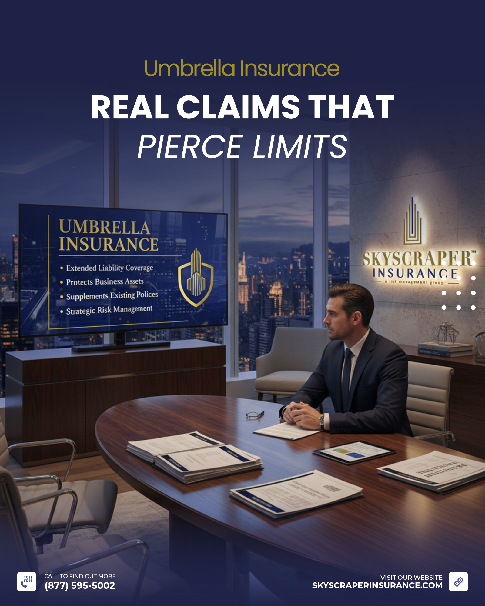 In the world of risk management, your primary insurance policies, auto, home, or business, act as the first line of defense. But what happens when a catastrophic event occurs? A “split-second” mistake can result in a legal judgment that far exceeds the standard $300,000 or $500,000 limits found on most basic policies. At Skyscraper Insurance, we take a higher perspective. We know that without a “vital safety net” like Umbrella Insurance, a single claim can pierce your primary limits and stall your financial success permanently.